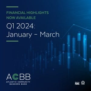 “Our financial performance remains strong into 2024. Consistent loan growth, elevated interest rates and effective management of our funding costs have sustained our strong net interest income growth. Our non-interest income remains consistent as we continue to offer products and services of value to our clients, while thoughtfully managing our non-interest expenses continues to be a top priority for the Bank. This is another great year of continuing the momentum of enhancing the value proposition for our clients and shareholders with the acquisition of Shatswell MacLeod, an internal audit service provider. We shared the exciting news with our clients on May 8, 2024, with an effective date of June 1, 2024. We have the opportunity to provide a high-quality service that our clients need as well as diversify our non-interest income.” said Craig Howie, President and CEO of Atlantic Community Bankers Bank.